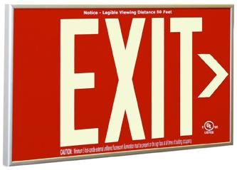 Photoluminescent Red Exit Sign 50 Feet - UL Listed - No Electricity - 20 Year - Made in USA