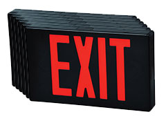 Black Exit Sign RED LED with Battery - UL Listed - Universal Mount - Case of 6