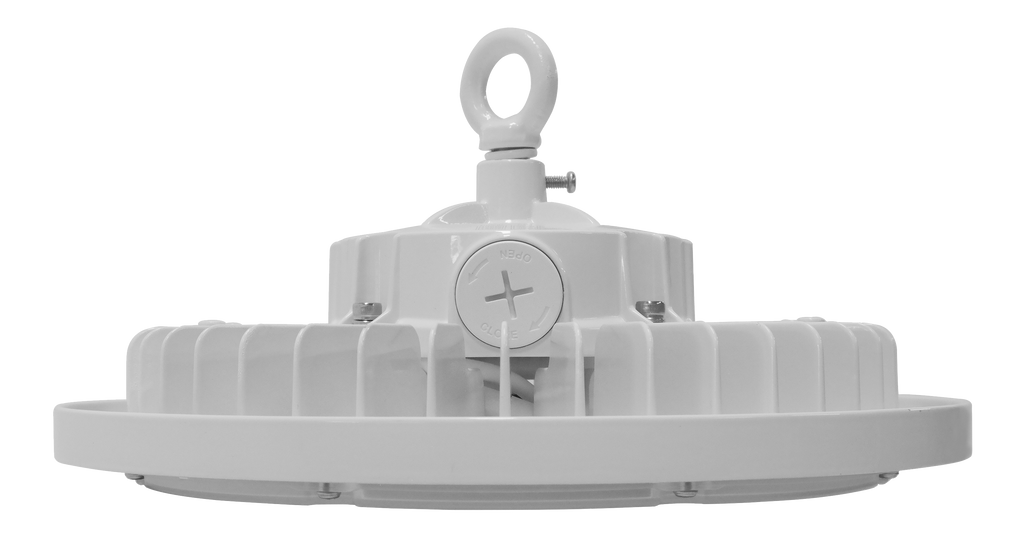 Round High Bay LED Fixture 240 Watts - Sensor Ready - Color Selectable - Black or White DLC premium approved. IP65 rated for ingress protection. 5-year warranty of all electronics and housing. Optional Mounting kits available for optimal versatility Universal 120-277 AC voltage (50-60Hz). Optional Universal 277-480 AC voltage (5060Hz)...