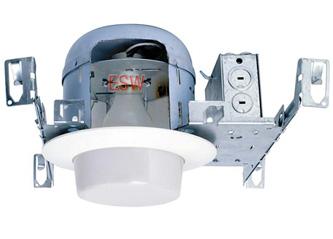 PRODUCT OVERVIEW-For new work applications where low-plenum or 6" joists are present. -3 Inch clearance of insulation required. -6-1/2" x 5-1/2" H. -Thermally-protected. -Adjustable housing for various ceiling thickness. -"Nail-less" installation bar hangers (new work). -Oversized pre-wired snap-on J-Box with 4 integral romex pry-outs with strain reliefs. -Integral T-bar installation...